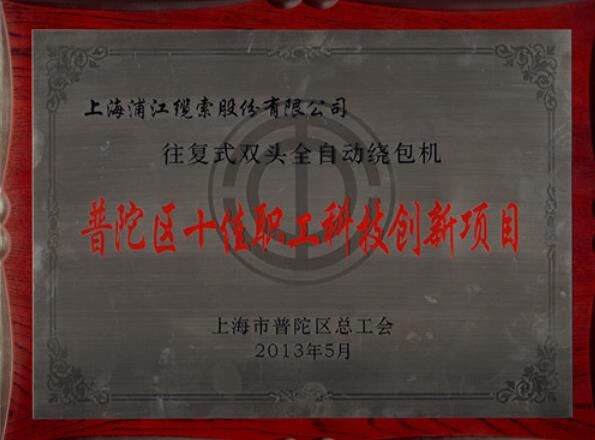 第五届上海职工科技节普陀专场——“劳动光荣创造伟大”暨普陀职工科技创新项目成果展示主题活动日前在真如镇社区文化活动中心成功召开,我司员工朱金林同志项目成果“往复式双头全自动绕包机”获普陀区十佳职工科技创新项目。